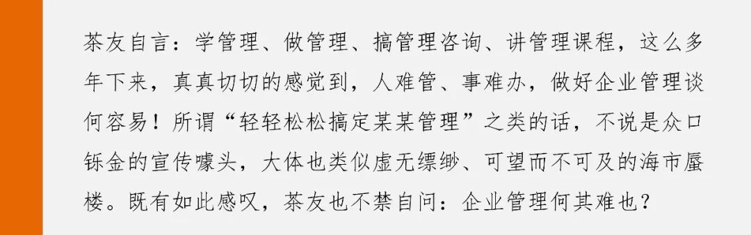 古语有云“坐而论道,起而行之”行不行,不可知,但行之前总要坐下来论一论,没有运筹帷幄,也难有决胜千里最后,欢迎各位茶友常来坐坐情之所至,有感而发,也能侃几句大山、发几句牢骚、留几篇美文“古来圣贤皆寂寞,惟有饮者留其名”,管理者当如是也!。