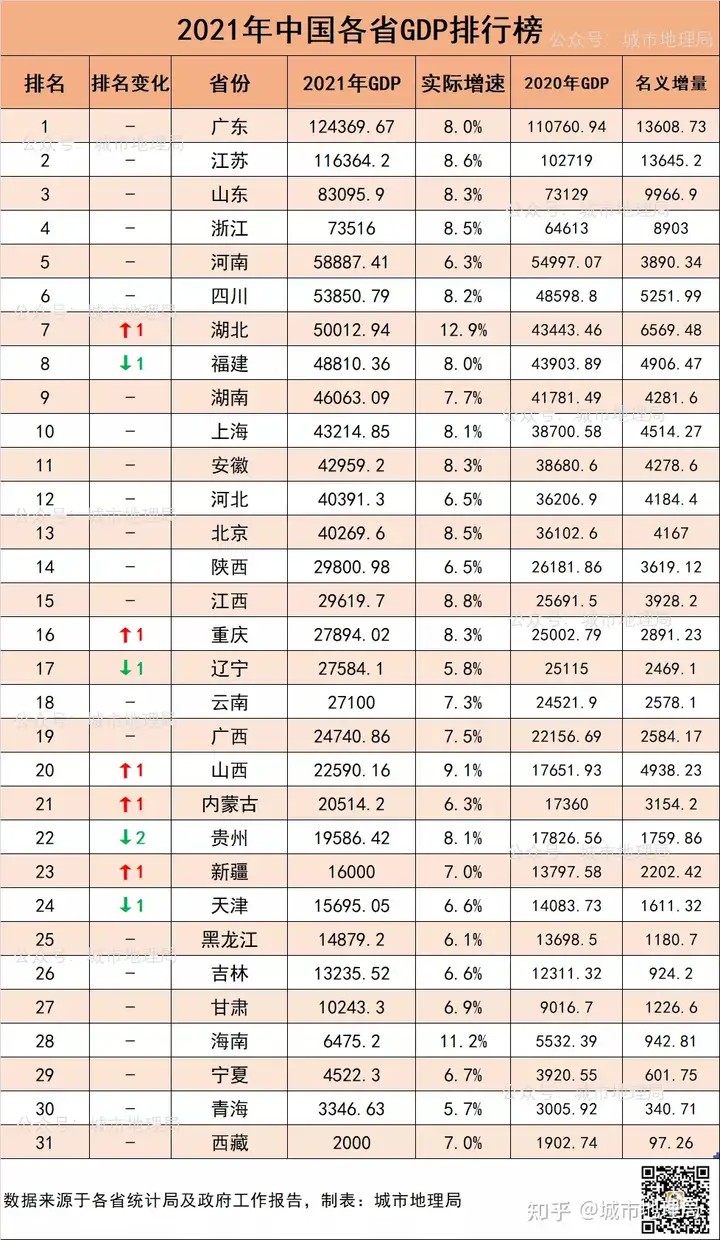 / ~" v5 @) D t4 } 江西虽然在2021年未能突破3万亿大关,但江西仍然以8.8%的经济增速位居全国第四,且江西11个设区市GDP全部破千亿,按照相应的增速发展,江西在2022年超过陕西也是板上钉钉的事排名下降最多的是贵州,相比2020年下降2个名次。
