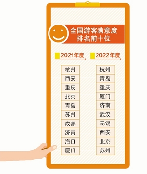 $ C# a6 U4 v6 j 厦门网讯(文/厦门晚报记者 刘佳盈 图/记者 陈立新)近日,中国旅游研究院发布《2022年全国游客满意度调查报告》报告显示,厦门游客满意度排名全国第四,较上年度上升6位这也是厦门连续两年(2021年度、2022年度)获得游客满意度调查全国前十。