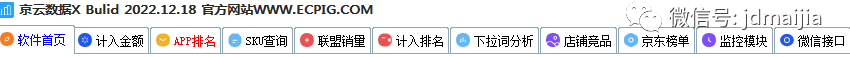 从软件上,我们依旧可以查询数据,对竞品数据有一个参考性的分析。2.ECPIG 京云助手X(PC桌面客户端):查留评率,评价分析,查排名,提取SKU采集排名数据,价格区间数据导出分析