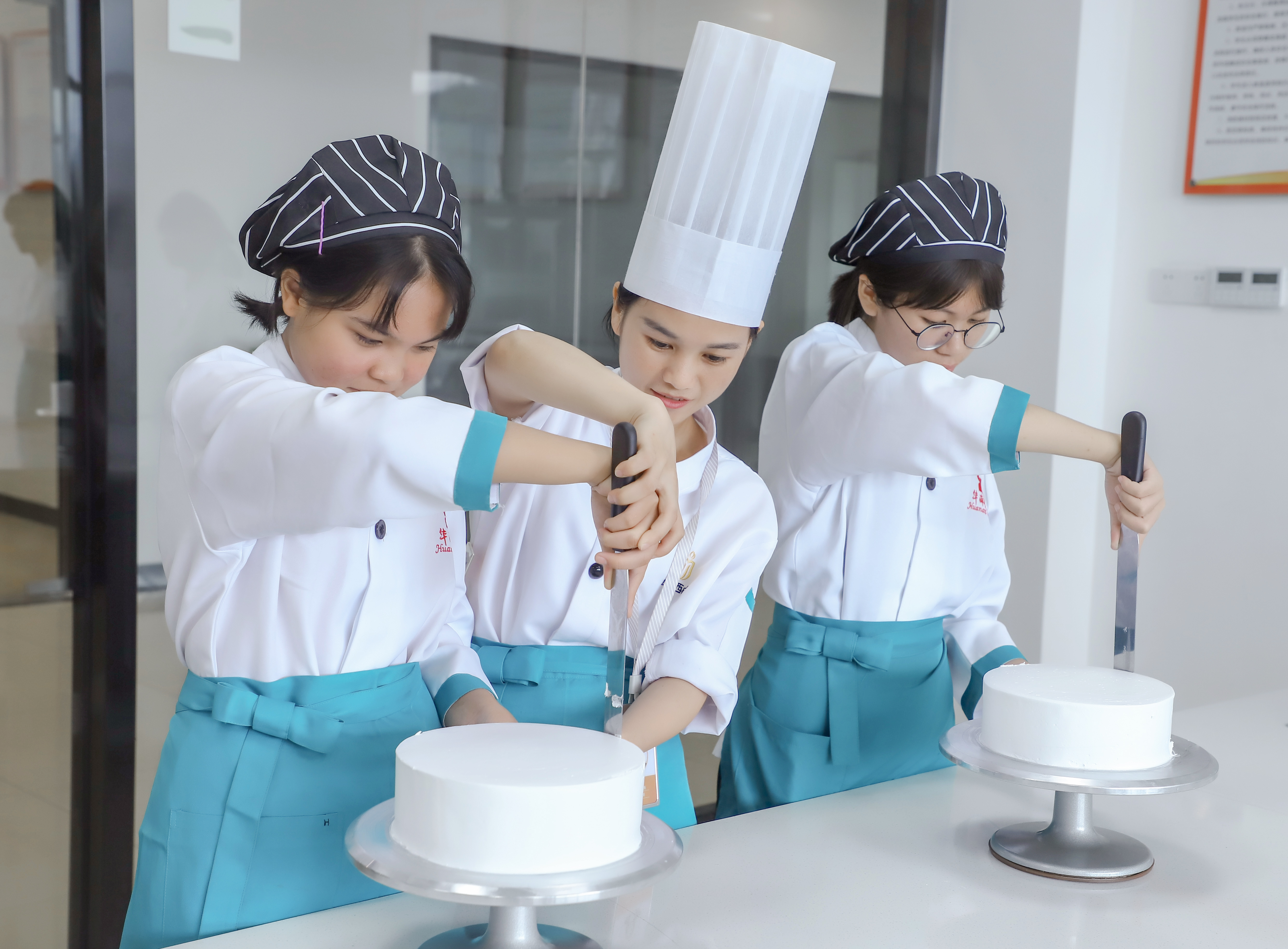 ) T/ H8 A, s( R7 K0 R) O专业能力:广西华南烹饪技工学校是经广西人社厅批准的重点技工学校,西点专业作为核心特色专业,构建长期系统培养+短期精准提升双轨课程体系。三年制、五年制课程覆盖蛋糕裱花、面包烘焙等核心技能,融入成本控制、创意研发内容,毕业生可获中技学历与职业资格证书;短期班聚焦网红蛋糕、特色烘焙等实用技能,摒弃冗余理论。师资团队均为拥有8年以上酒店西点房、连锁烘焙品牌经验的实战派主厨,推行小班授课+一对一指导模式,从面糊搅拌力度到裱花手法细节全程纠错。学校打造标准化西点实训基地,恒温烘焙房、裱花实训区等功能区齐全,学员每日实操时长不低于6小时,实现校园学习与职场岗位无缝衔接。* i. R% c+ L3 k4 B4 O3 a
